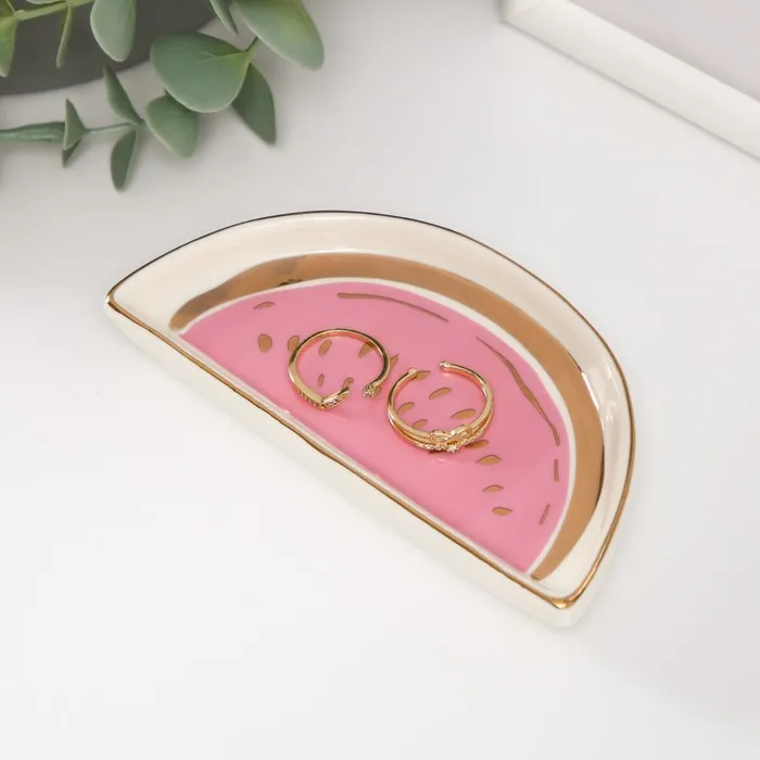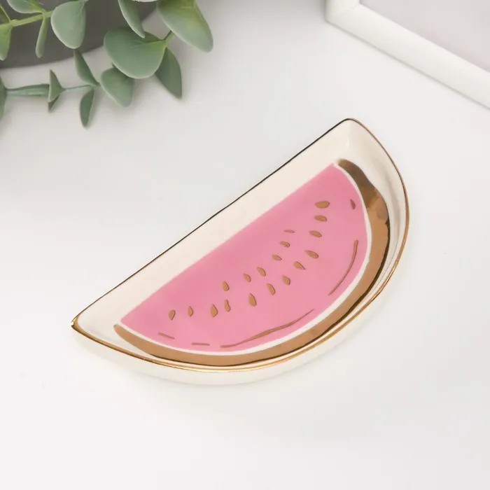 Сувенир керамика подставка под кольца "Кусочек арбуза" 12х6х1,6 см — Характеристики
