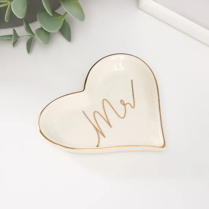 Сувенир керамика подставка под кольца "Мистер" сердце 10х9х1,6 см — Характеристики