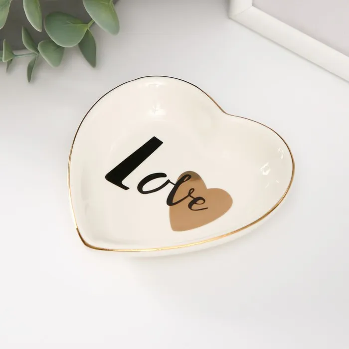 Сувенир керамика подставка под кольца "Сердце. Любовь" 10,5х10х2 см