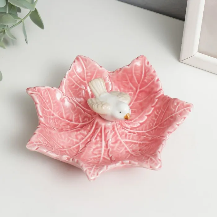 Сувенир керамика подставка "Птица на кленовом листе" МИКС 5,5х13,7х13,5 см — Характеристики