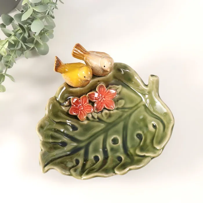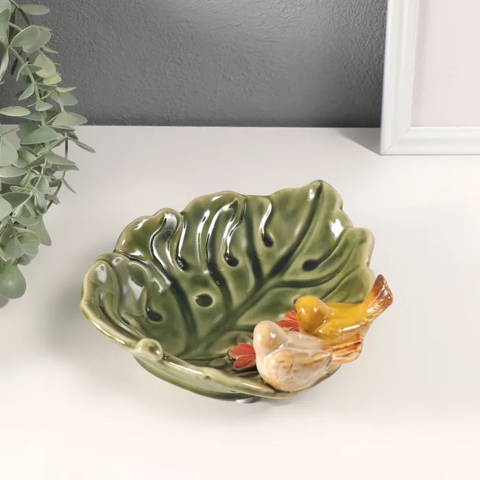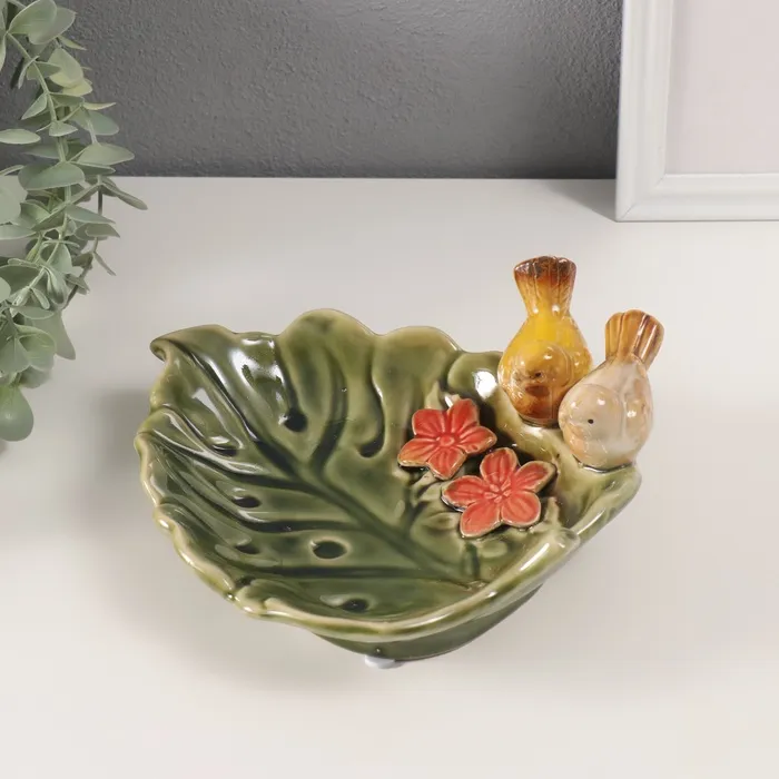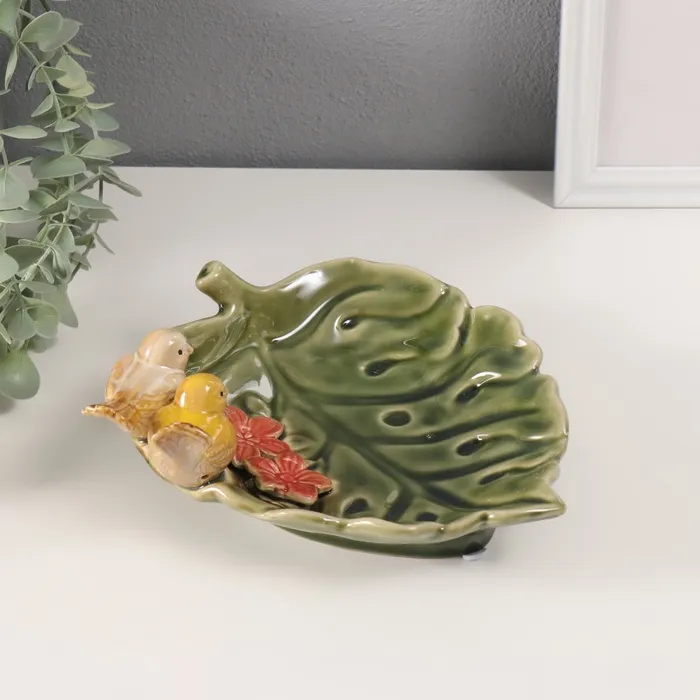 Сувенир керамика подставка "Зеленый лист с двумя птичками" 25х19х8 см — Характеристики