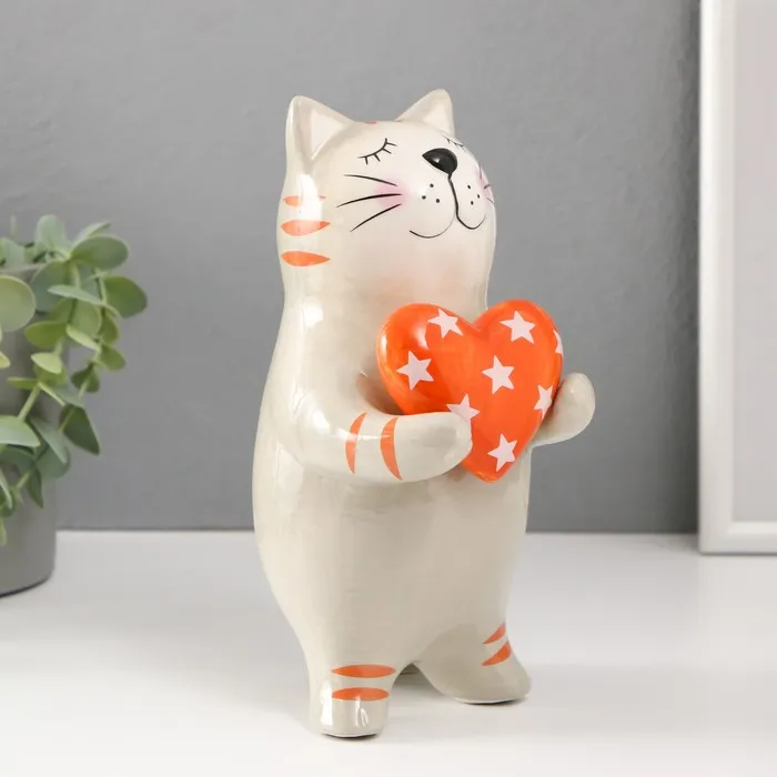 Сувенир керамика "Рыжик кот с сердечком в звёздочку" 12,2х11,2х20 см — Характеристики