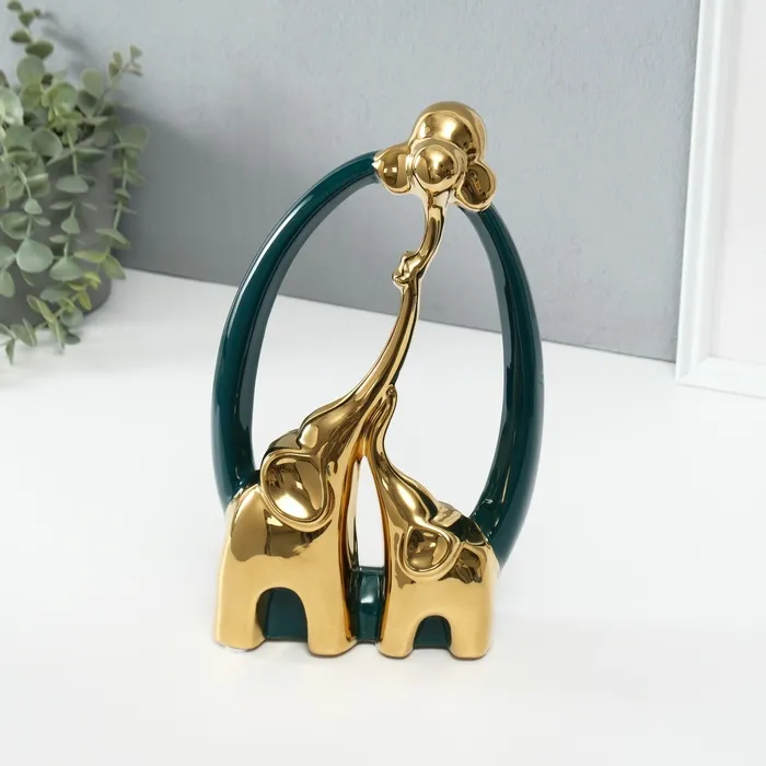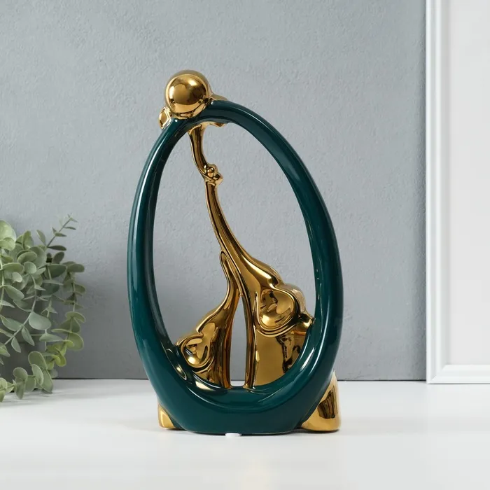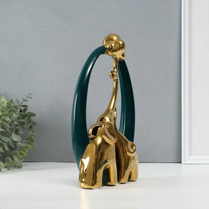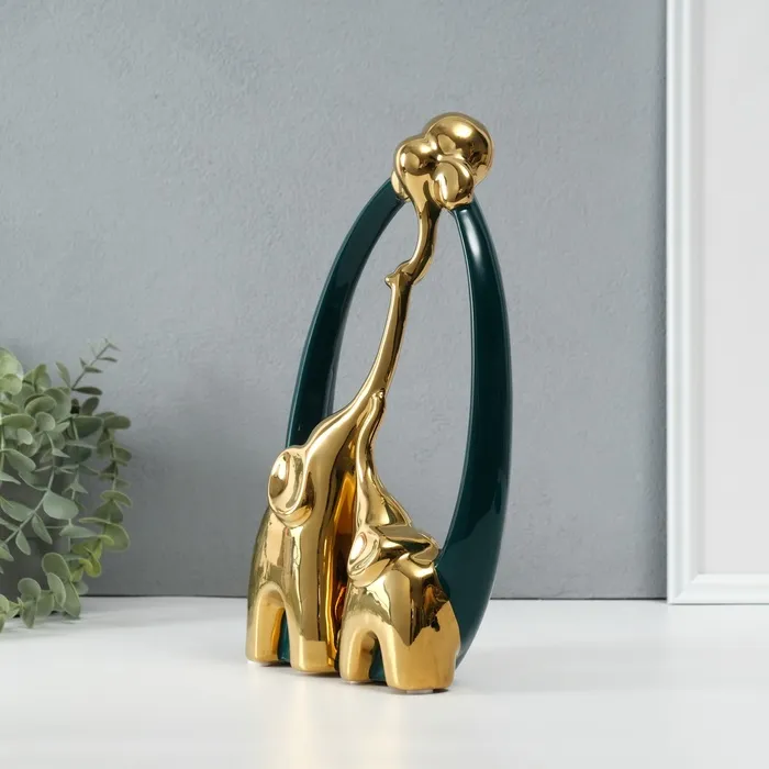 Сувенир керамика "Семья слонов. Овал" тёмно-зелёный с золотом 6,5х17х28,5 см — Характеристики