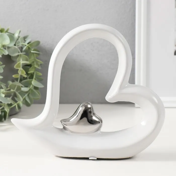 Сувенир керамика "Сердце в сердце" белый с серебром 20,5х4х18 см — Характеристики