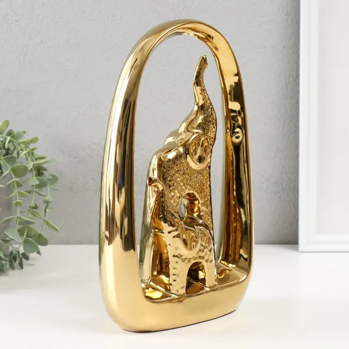 Сувенир керамика "Слон и слонёнок" золото 5,5х17,5х29 см — Характеристики