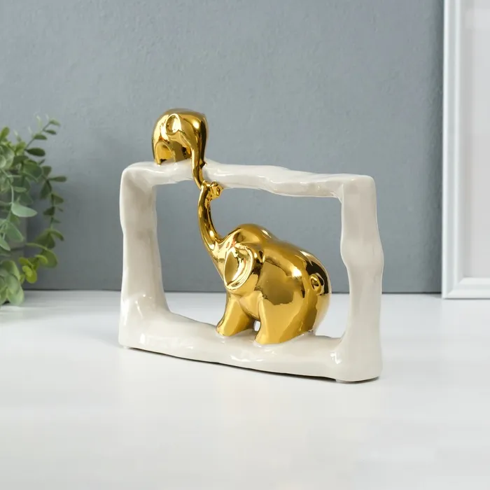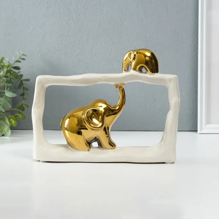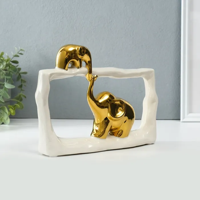 Сувенир керамика "Слон со слонёнком - касание. Прямоугольник" белый с золотом 6х23х16,5 см 1032364 — Характеристики