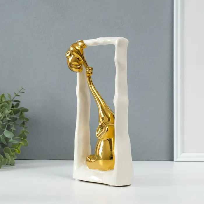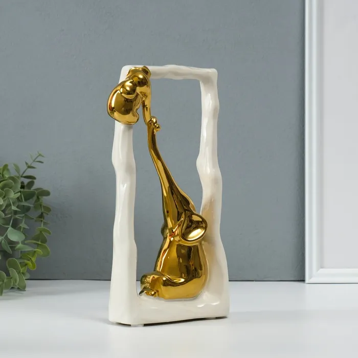 Сувенир керамика "Слон со слонёнком - опора. Прямоугольник" белый с золотом 5,5х13,5х26 см 1032365 — Характеристики