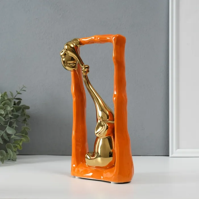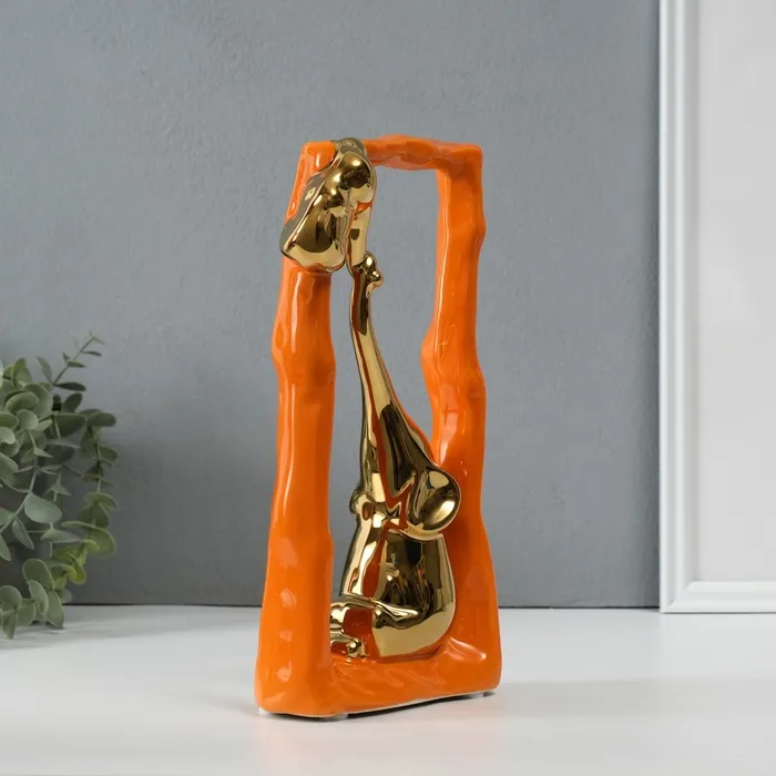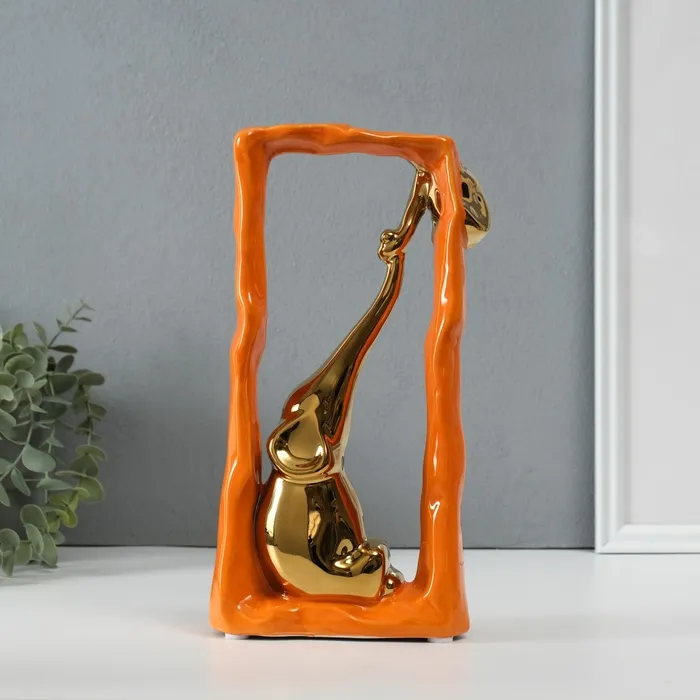 Сувенир керамика "Слон со слонёнком - опора. Прямоугольник" оранж с золотом 5,5х13,5х26 см 1032365 — Характеристики