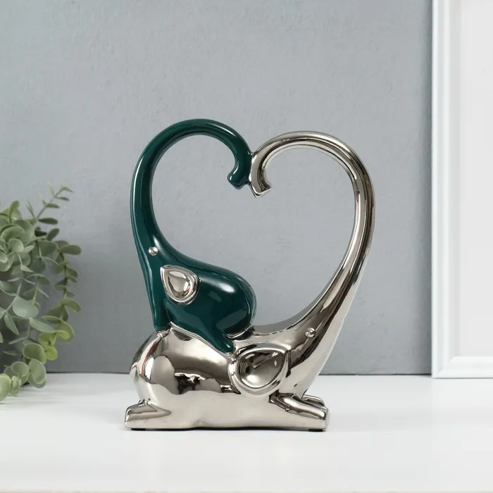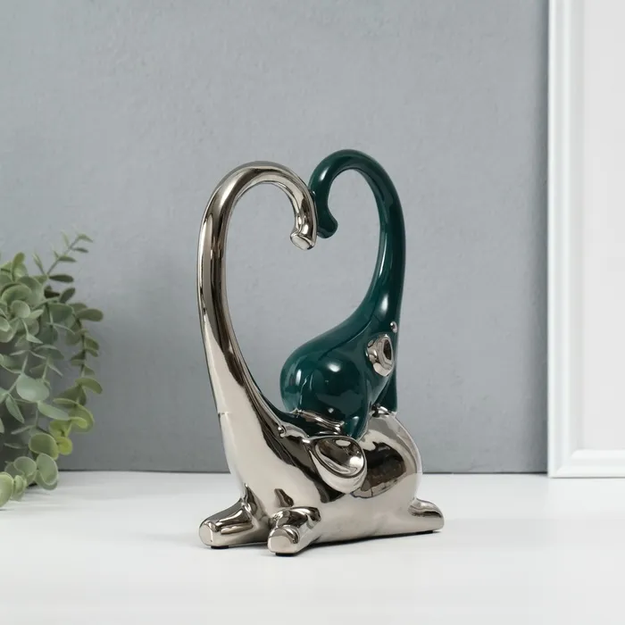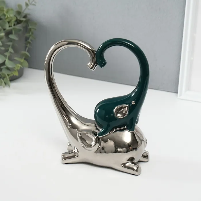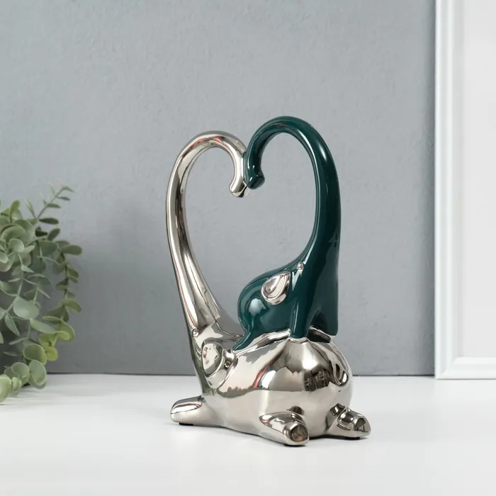 Сувенир керамика "Слон со слонёнком. Сердце" тёмно-зелёный с серебром 7,3х17,5х22 см — Характеристики