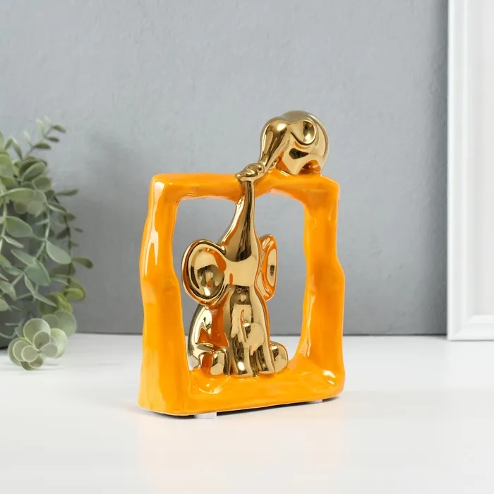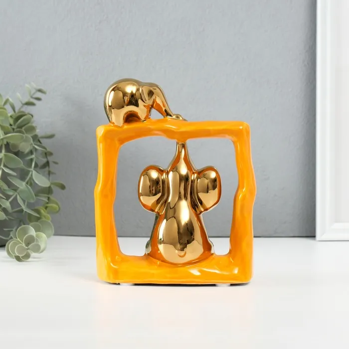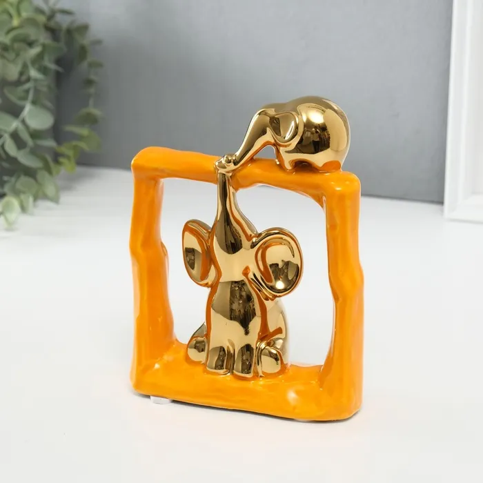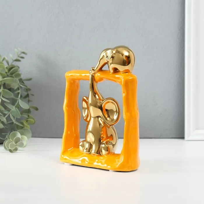 Сувенир керамика "Слонята - поддержка. Квадрат" оранжевый с золотом 6х13,5х17,5 см — Характеристики