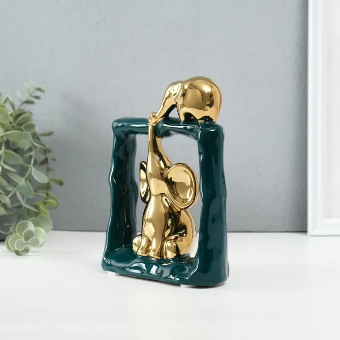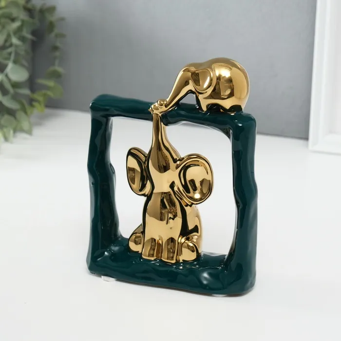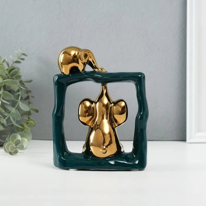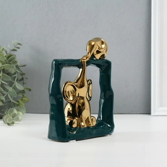 Сувенир керамика "Слонята - поддержка. Квадрат" тёмно-зелёный с золотом 6х13,5х17,5 см — Характеристики