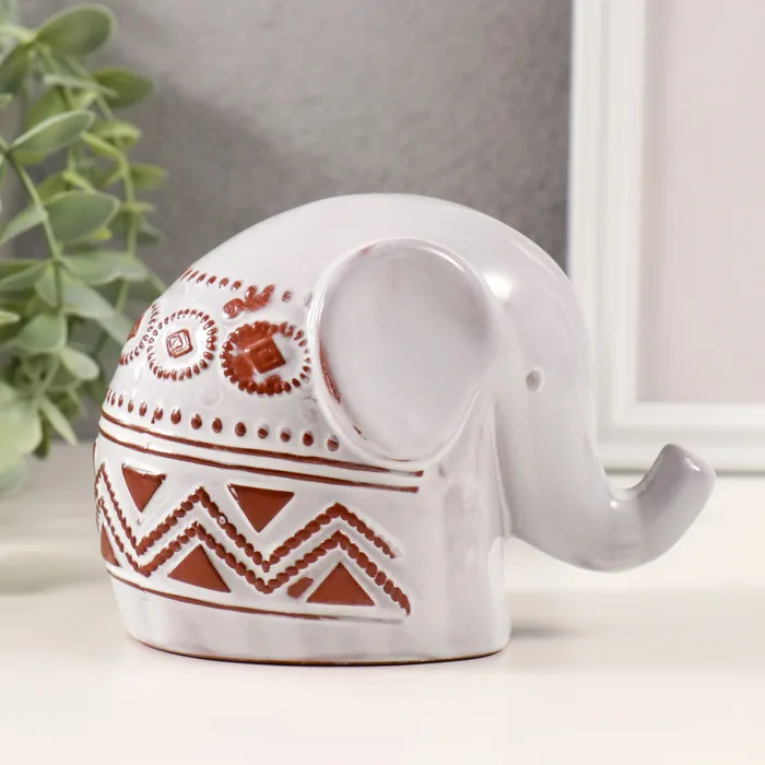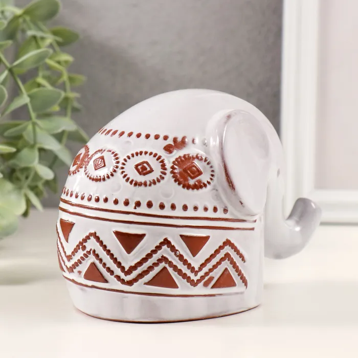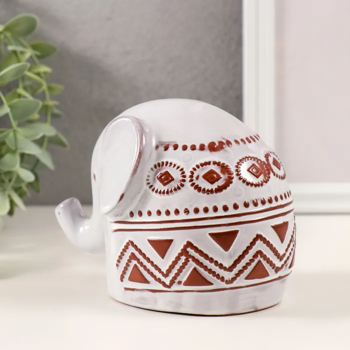 Сувенир керамика "Слонёнок. Этнические узоры" белый состаренный 8х12,5х9 см — Характеристики