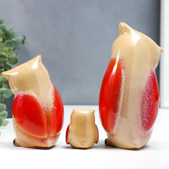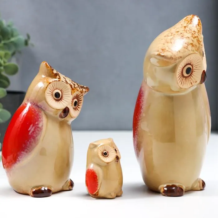Сувенир керамика "Совы - папа, мама, я" набор 3 шт 5,5х4,3х3 13х6,5х6,3 18х8х6 см