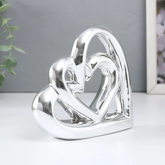 Сувенир керамика "Сплетённые сердца" серебро 12,3х3,5х11,8 см — Характеристики