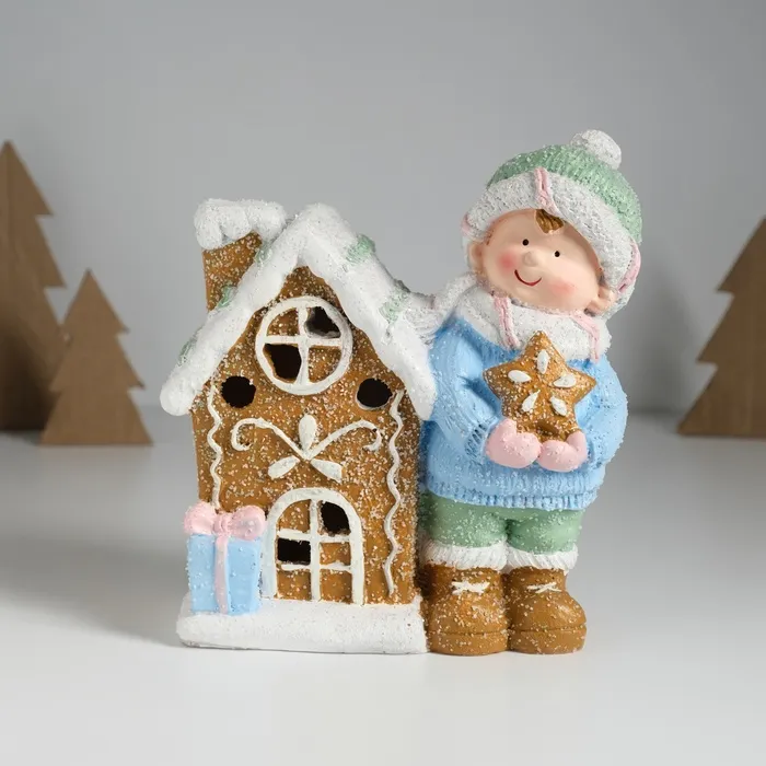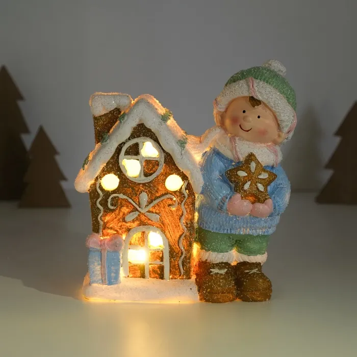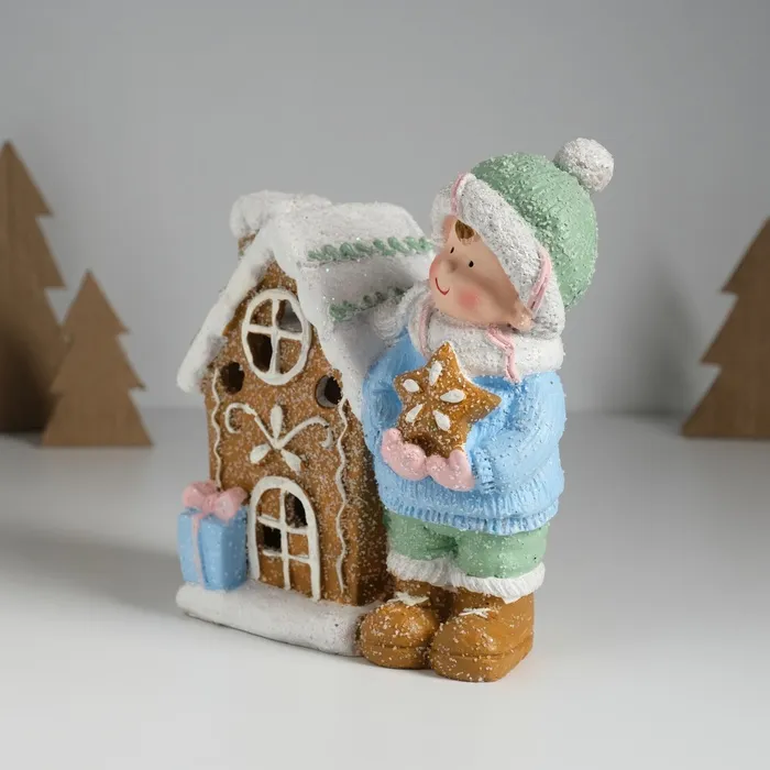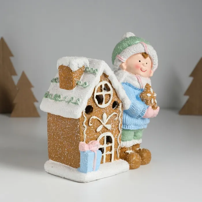 Сувенир керамика свет "Малышка в голубом свитере у пряничного домика" 15х8х16 см — Характеристики
