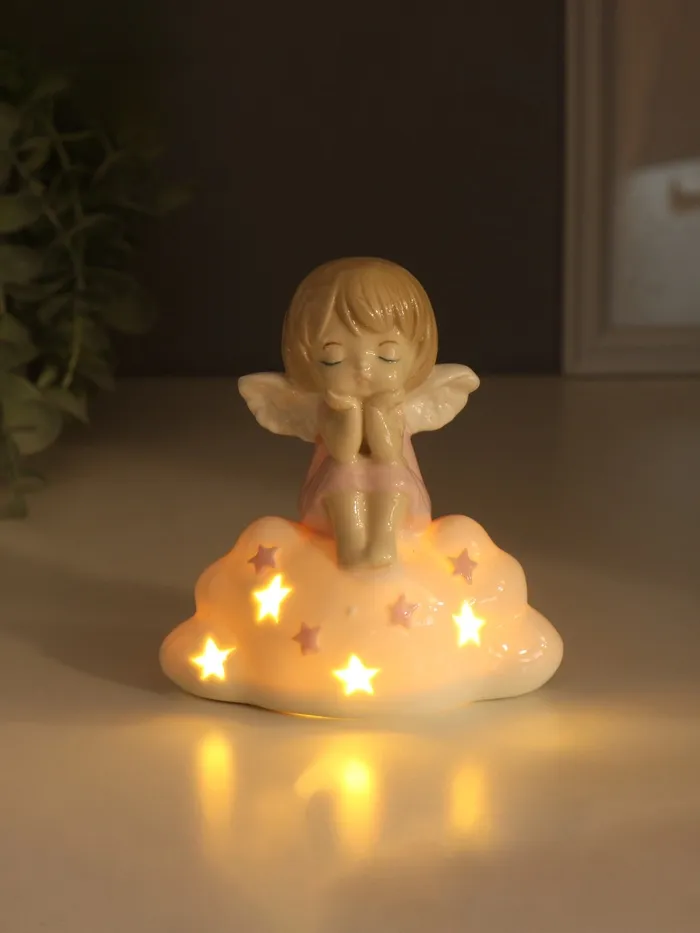 Сувенир керамика свет "Мылышка-ангел в розовом на облачке" 5,5х12х11 см