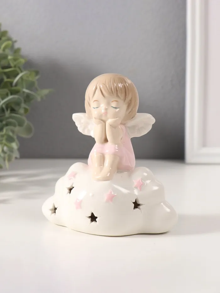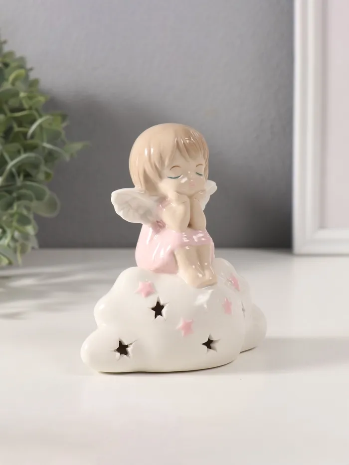 Сувенир керамика свет "Мылышка-ангел в розовом на облачке" 5,5х12х11 см — Характеристики