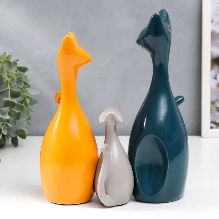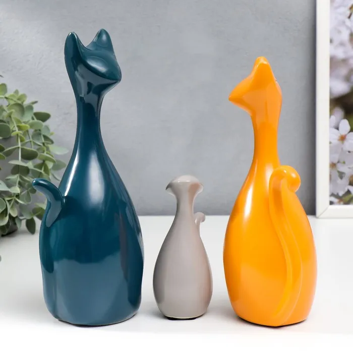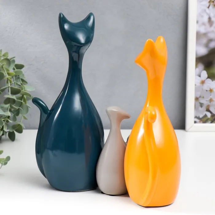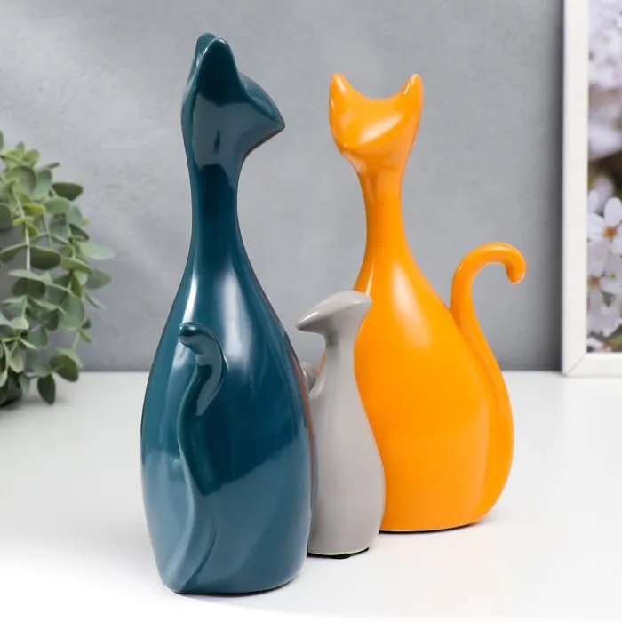 Сувенир керамика "Три кота" синий и оранжевый,серый набор 3 шт 11,5х4,5х6 21х7х9 24х7,5х9,5 см 7509 — Характеристики