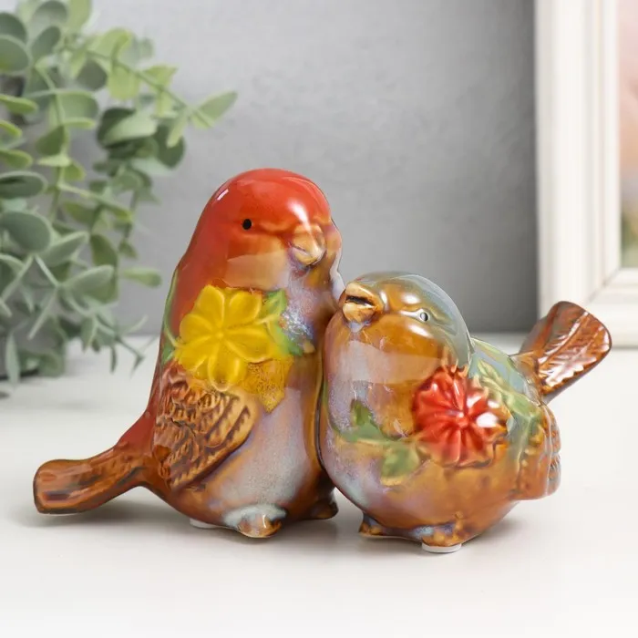Сувенир керамика "Воробьи с цветами" МИКС 10х16,5х10 см — Характеристики