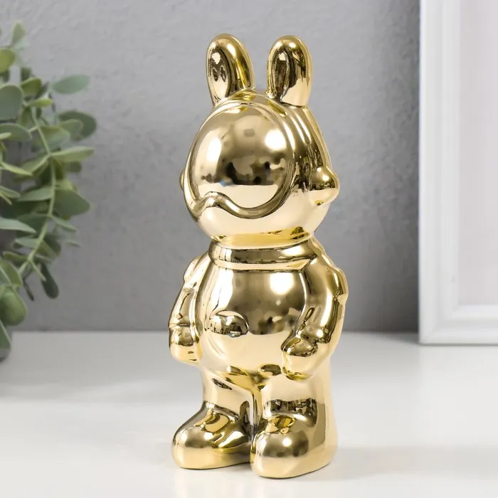 Сувенир керамика "Зайка-космонавт" золото 8х6х17 см — Характеристики