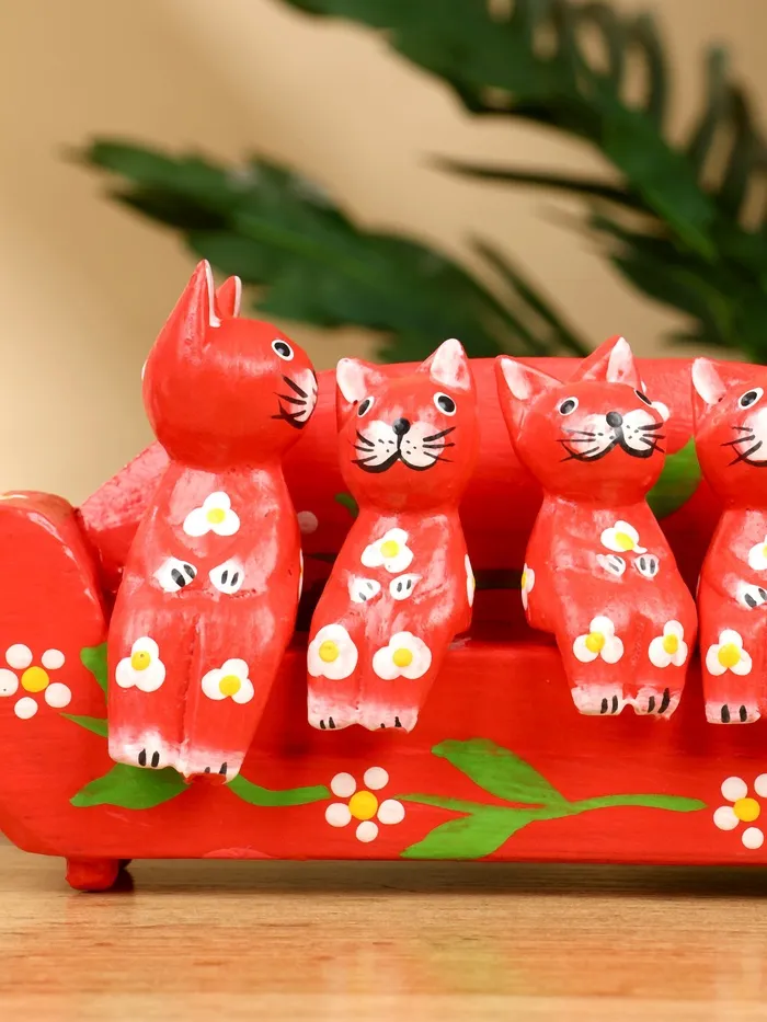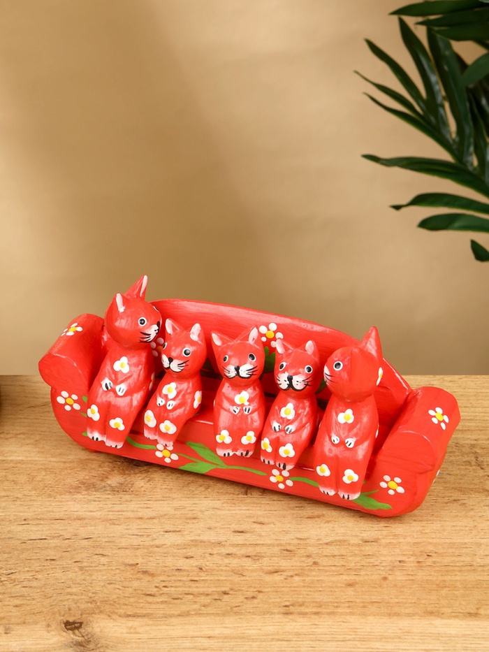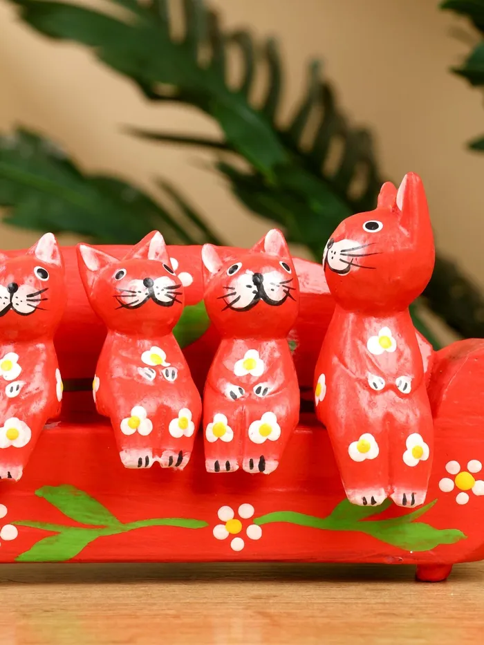 Сувенир «Кошачье семейство», 20×5×10 см, дерево, красный — Характеристики