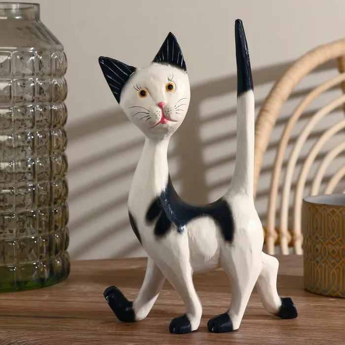 Сувенир «Кошечка», 17×27×7 см, белый с чёрным, дерево — Характеристики