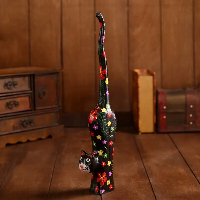 Сувенир «Кошечка черная в цветочек», 8×4×39 см, дерево — Характеристики