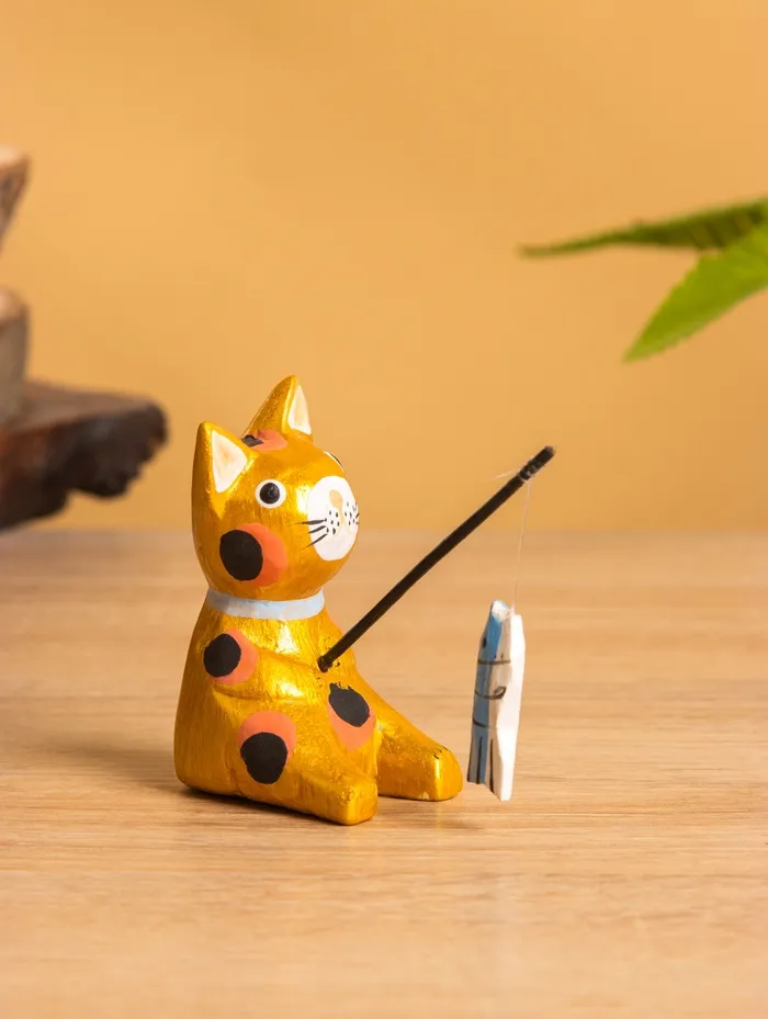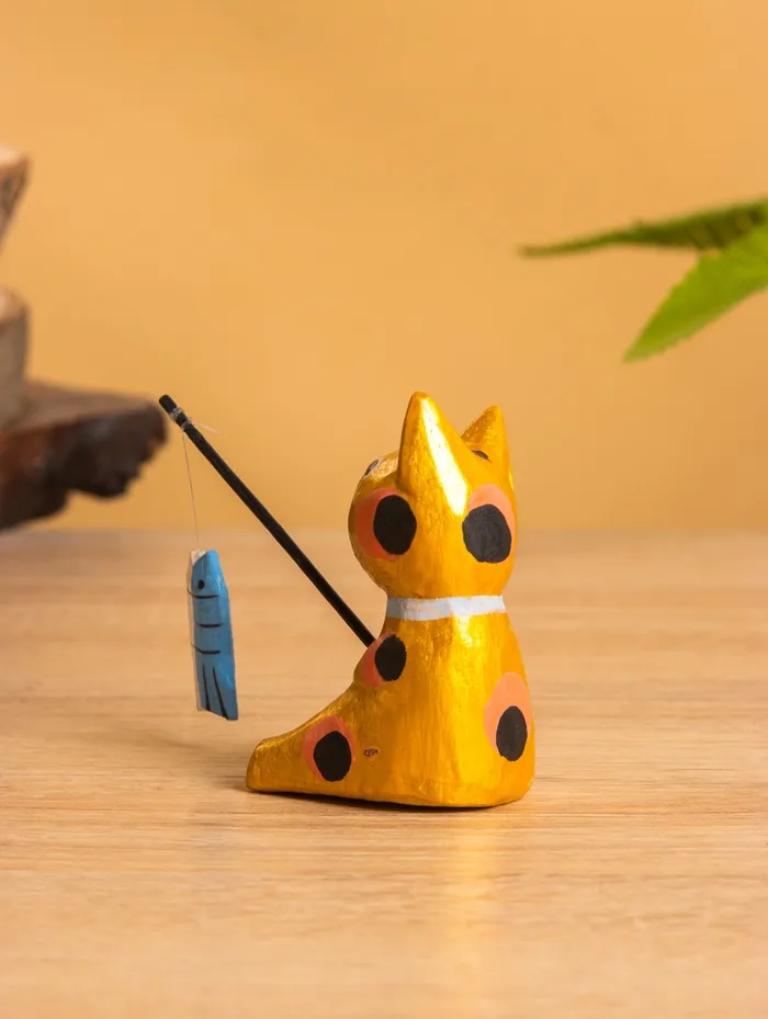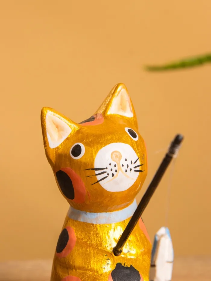 Сувенир «Кот рыбак», 3×6×7 см, дерево, золотой — Характеристики