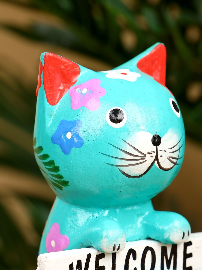 Сувенир "Кот с табличкой WELCOME" дерево 8х5х10 см, цв. бирюзовый — Характеристики
