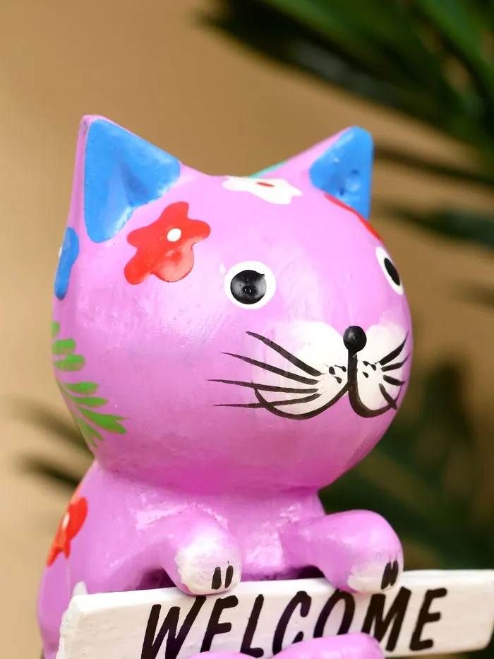 Сувенир "Кот с табличкой WELCOME" дерево 8х5х10 см, цв. сиреневый — Характеристики