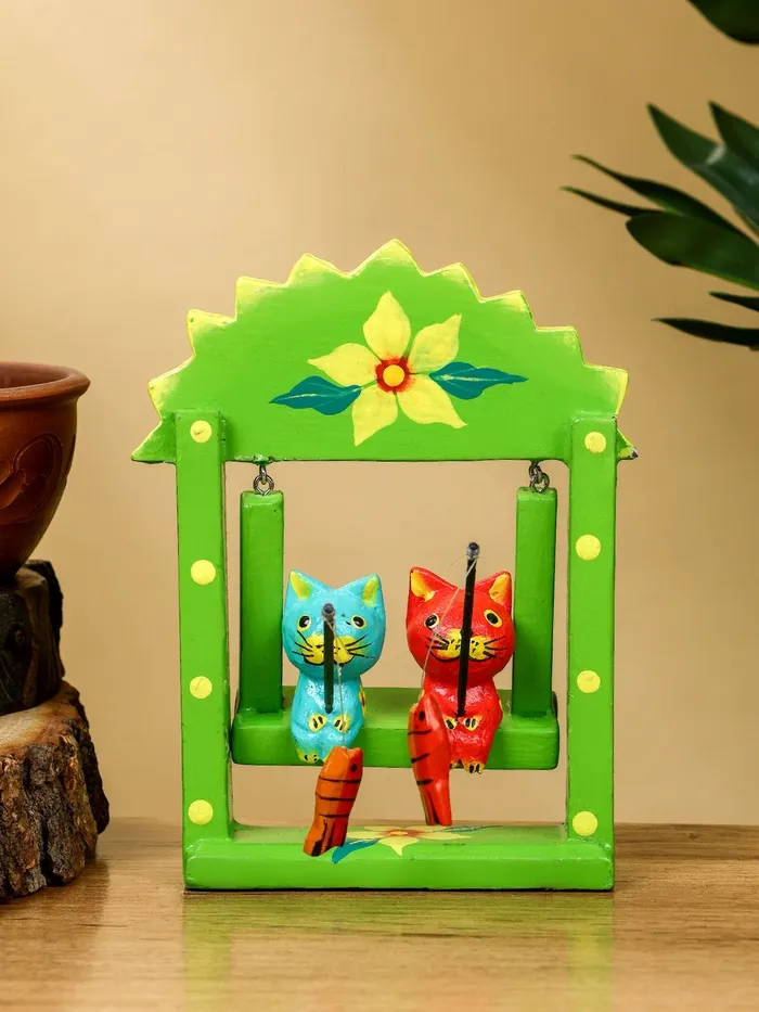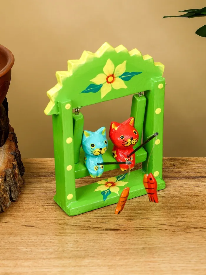 Сувенир "Котята на качелях" дерево 10х3,5х15 см, цв. зелёный — Характеристики