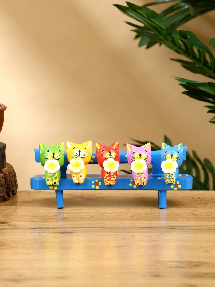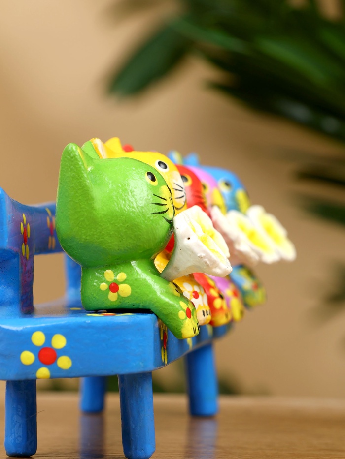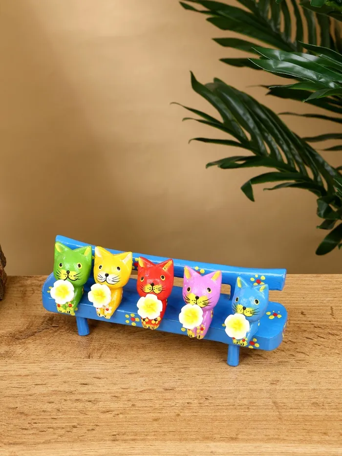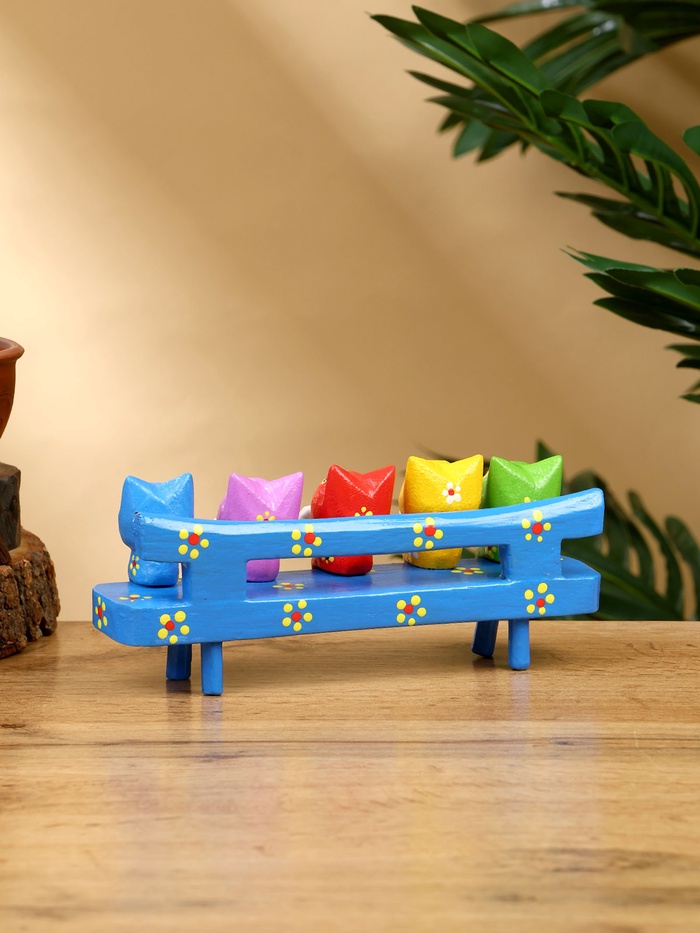 Сувенир "Котята на скамейке" дерево 19х8х6 см, цв. голубой — Характеристики