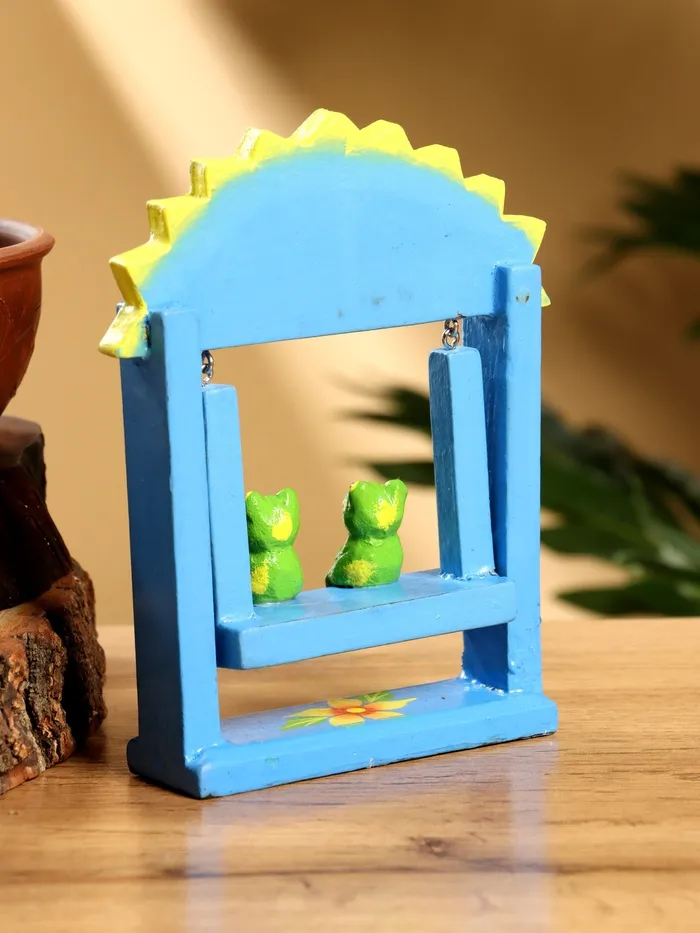 Сувенир «Лягушата на качелях», 10×3.5×15 см, дерево, голубой — Характеристики