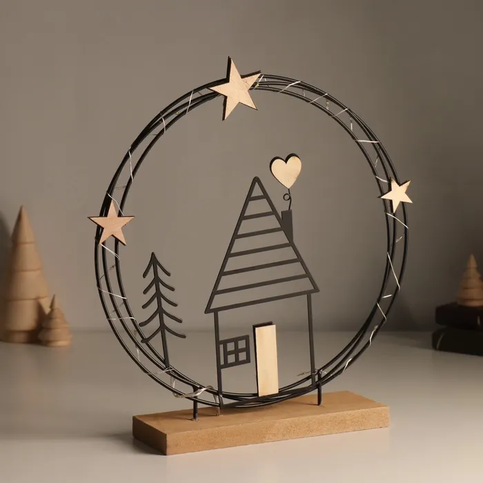 Сувенир металл, дерево свет "Домик с сердечком. Ночное небо" 6х25,5х26,5 см — Характеристики