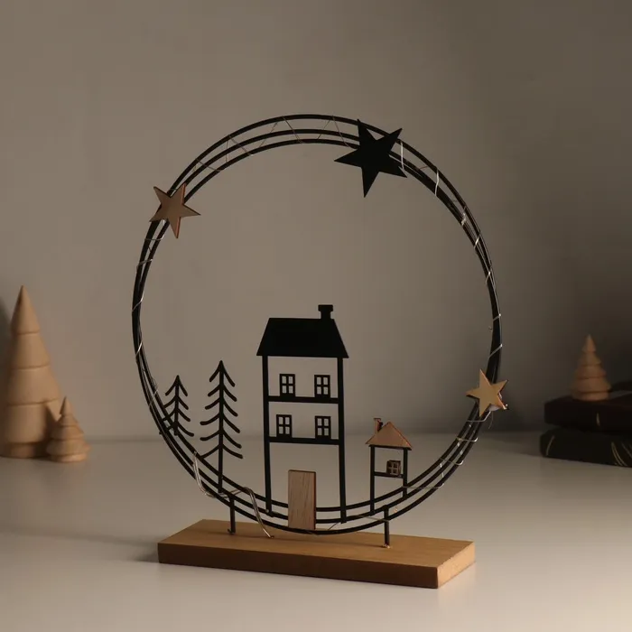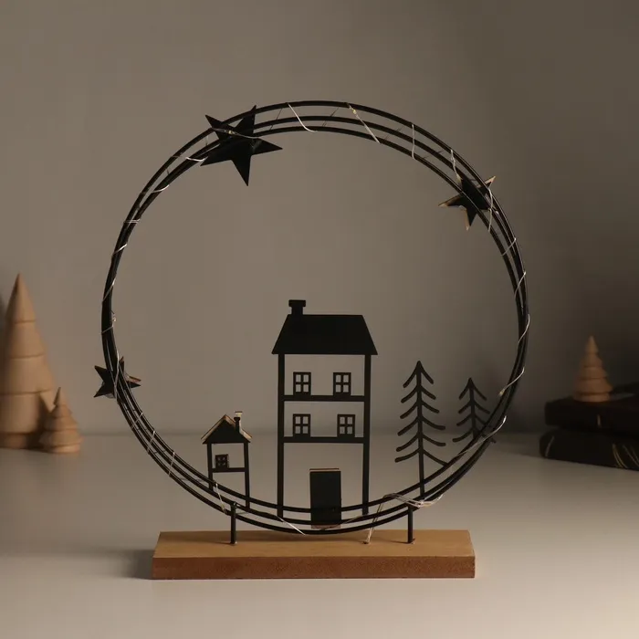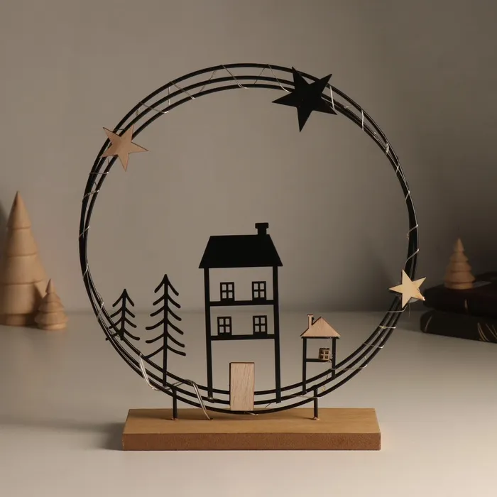 Сувенир металл, дерево свет "Домики. Ночное небо" 6х25,5х26,5 см — Характеристики