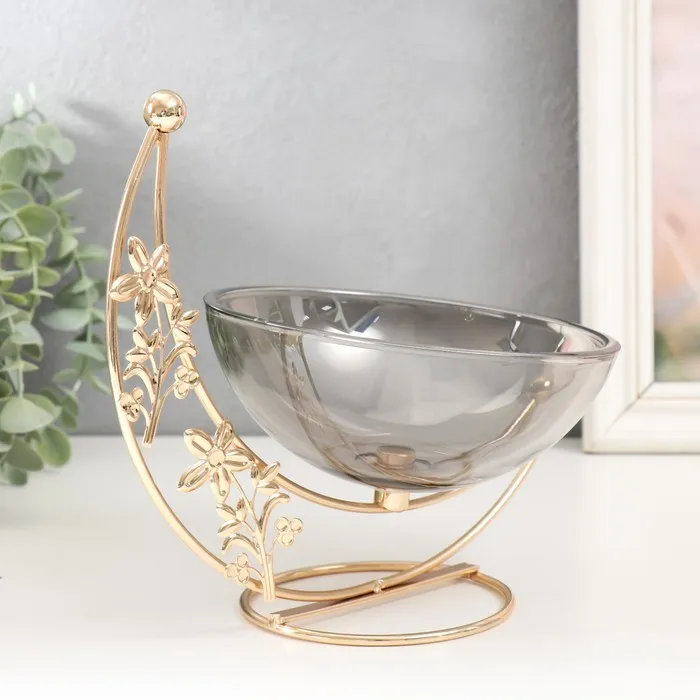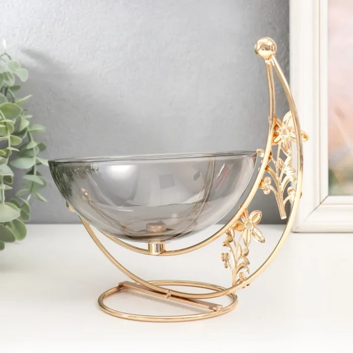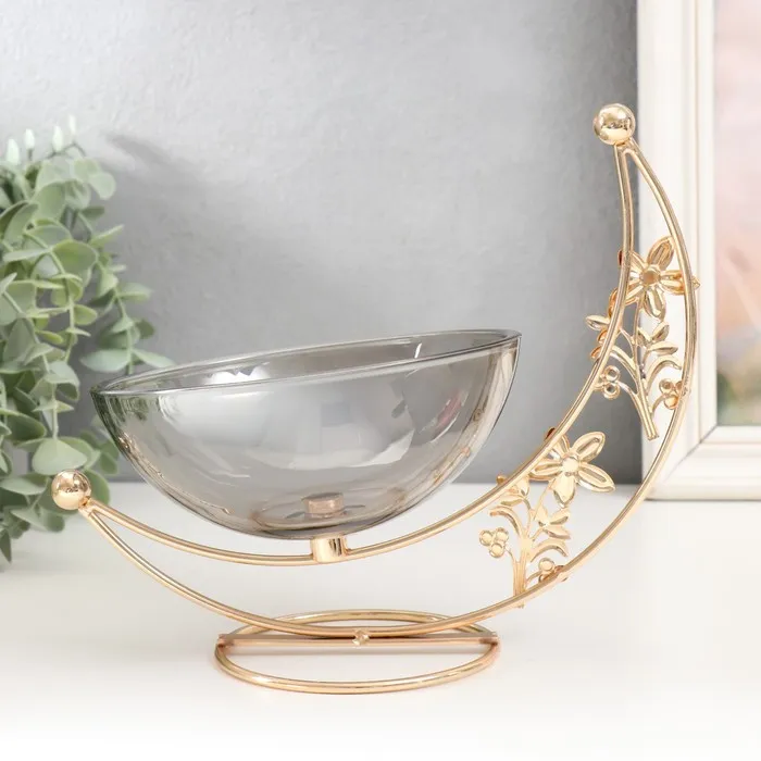Сувенир металл, стекло подставка "Чаша на цветочном месяце" d-15 см золото 21,5х10х2 см — Характеристики