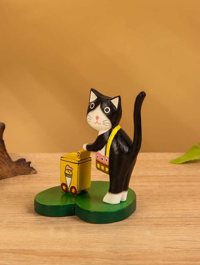 Сувенир на подставке дерево «Кошка мороженщик», 7×8×10 см, дерево — Характеристики