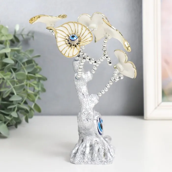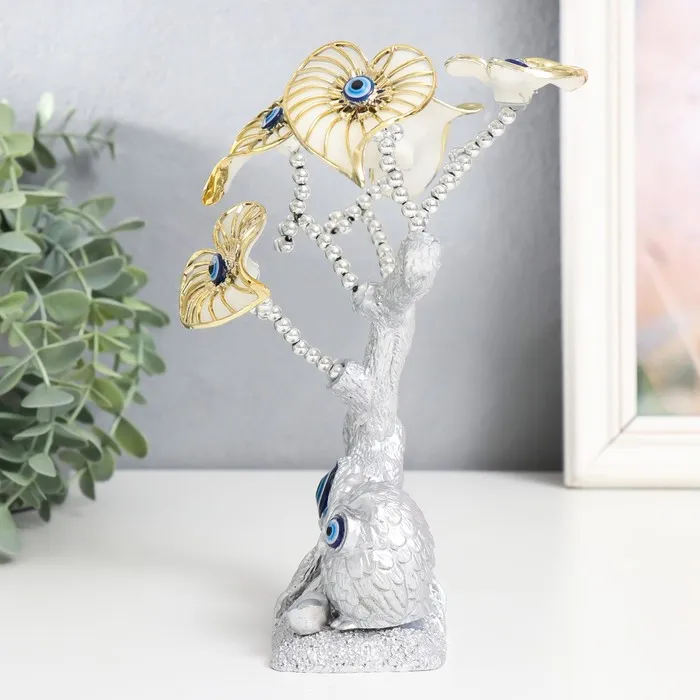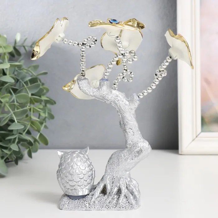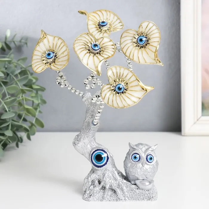 Сувенир от сглаза "Цветущее дерево, листья-сердце. Филин" серебро 15х5,7х20 см — Характеристики
