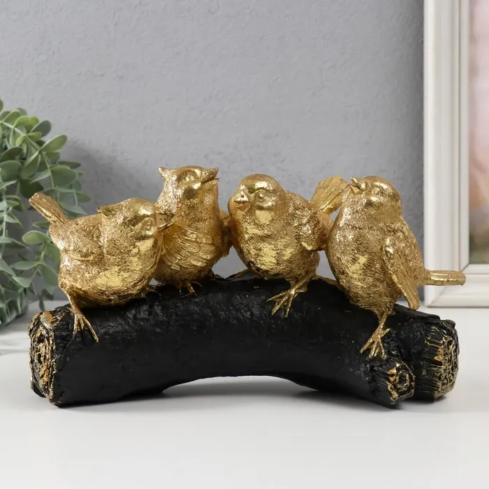 Фигурка полистоун «Четыре золотых птички на ветви», 22×6×13 см