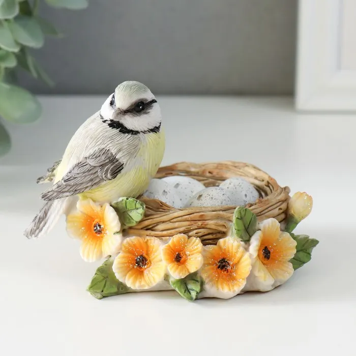 Фигурка полистоун «Синичка в гнезде, с цветами», 11×8×7 см