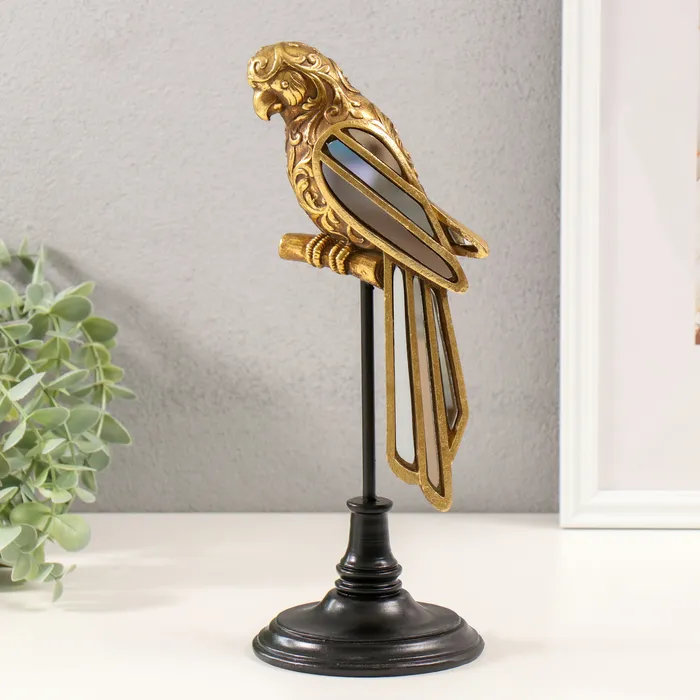 Фигурка полистоун «Попугай Ара на жёрдочке», золото, зеркало,10.5×10.5×30.5 см
