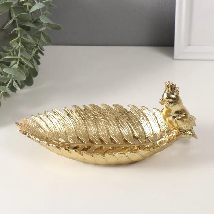 Фигурка полистоун подставка «Золотой попугайчик с хохолком на золотом листе», 11×24.5×11 см