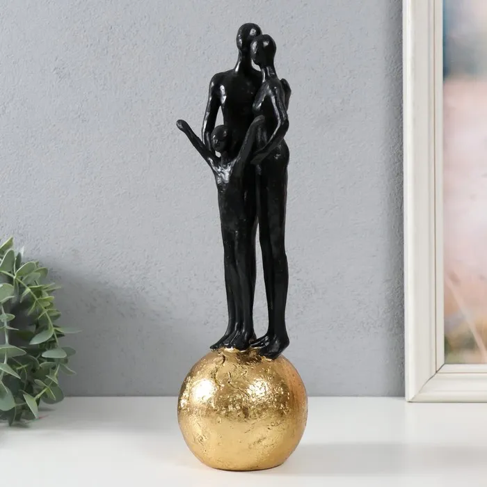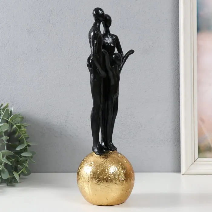 Сувенир полистоун "Абстракция. Семья на шаре" золото с чёрным 9,5х9,5х32 см — Характеристики