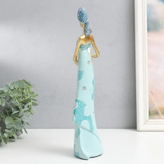 Сувенир полистоун "Африка - Королева пустыни, с кувшином" золото с голубым 10х6,5х32,5 см — Характеристики