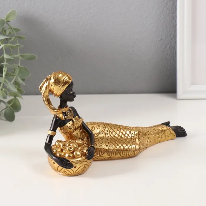 Сувенир полистоун "Африканка Рудо лежит с чашей даров" 7,5х21х13 см — Характеристики