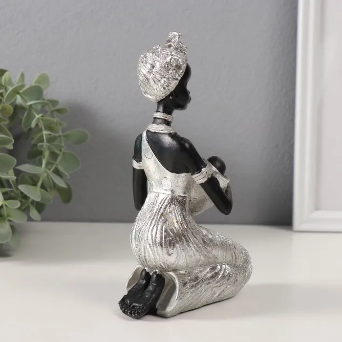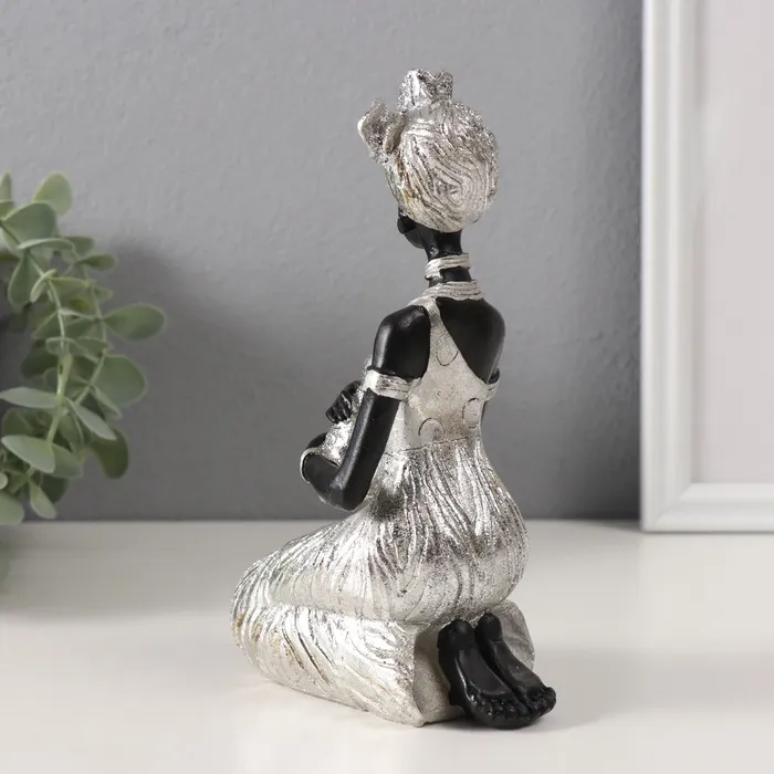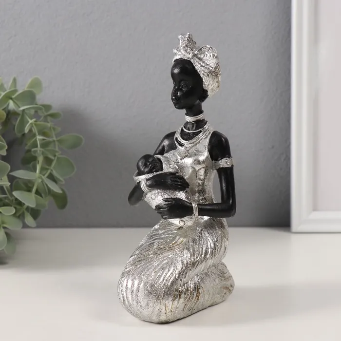 Сувенир полистоун "Африканка с ребенком, в серебристом платье" 11х7,5х18 см — Характеристики