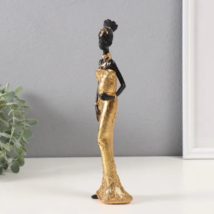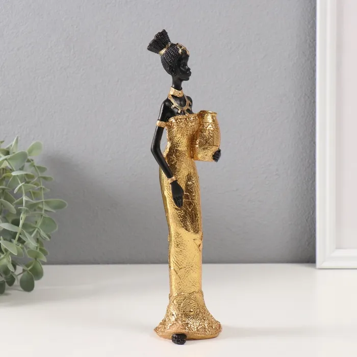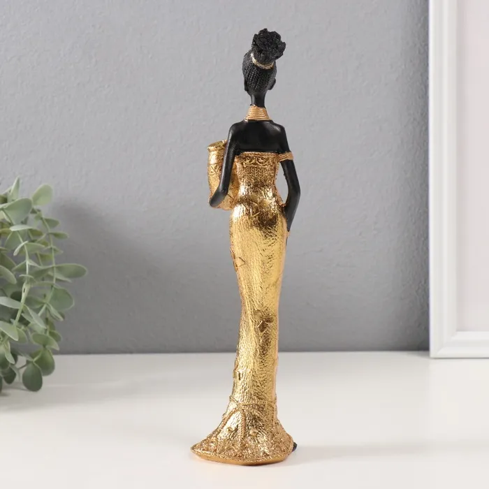 Сувенир полистоун "Африканка Зэмба в золотом платье, с вазой" 5х6х27 см — Характеристики