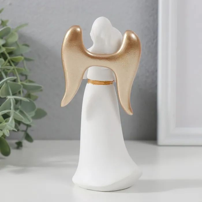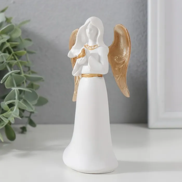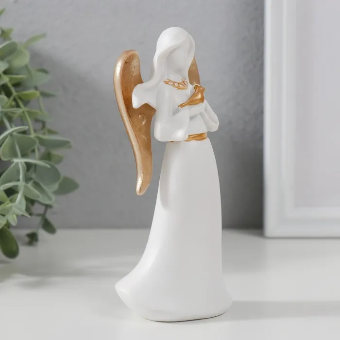 Сувенир полистоун "Ангел-дева с птичкой" белый с золотом 13,5х4,2х6,5 см — Характеристики