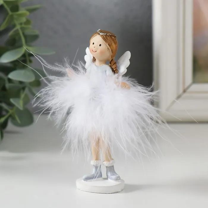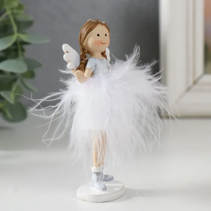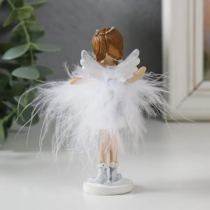 Сувенир полистоун "Ангел-малышка с косами, в белой юбочке" пух 10х3х5 см — Характеристики