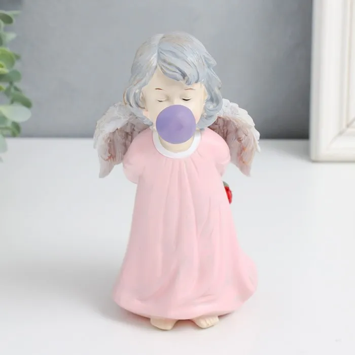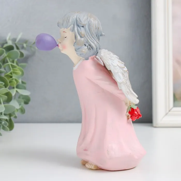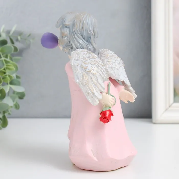 Сувенир полистоун "Ангел с розой, надувает пузырь" 8х8х18 см — Характеристики